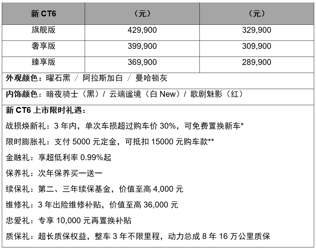 以立异虚拟现实技能发布百万级磁浮底盘,搭载该底盘的全尺度旗舰轿车凯迪拉克新CT6也同步正式上市。新CT6优化装备结构,精简为臻享、奢享、旗舰三款车型,装备全面晋级,全款一口价28.99万元起。一起,新CT6重磅推出备受用户好评的“战损焕新礼”——单次车损逾越购车价三成可置换等价新车,现在已有逾越60位凯迪拉克车主享用该权益。不只有未来的安心保证,凯迪拉克更带来了当下可享的诚心,本日起至“双十一”,用户可享5000元定金抵15000元购车款的限时胀大礼遇。不只如此,新CT6还带来了忠爱礼、续保礼、金融礼、保养礼等八大权益。凯迪拉克新CT6诞生于品牌专属旗舰奢华后驱渠道,不只搭载百万级磁浮底盘,更交融品牌前锋规划言语与极致奢华细节,为用户所带来尖端驾驭趣味与越级乘坐体会。立刻下定凯迪拉克新CT6,解锁专属百万级奢华奢享新境!